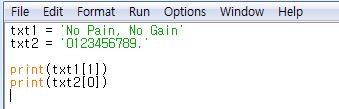 txt2의 0번 인덱스, 즉 첫번째 문자열 출력