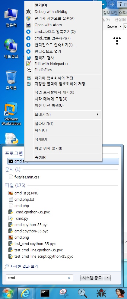 1. 윈도우 키 입력 > 프로그램 실행 창에서 cmd 명령어 입력 > 마우스 오른쪽 클릭 후 관리자 권한 실행
