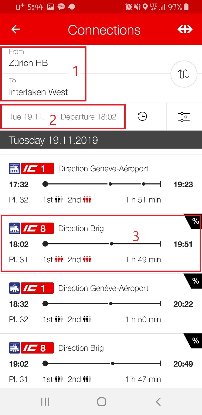 2번 : 출발 시간지정 (출발시간 혹은 도착시간을 설정할 수 있음)