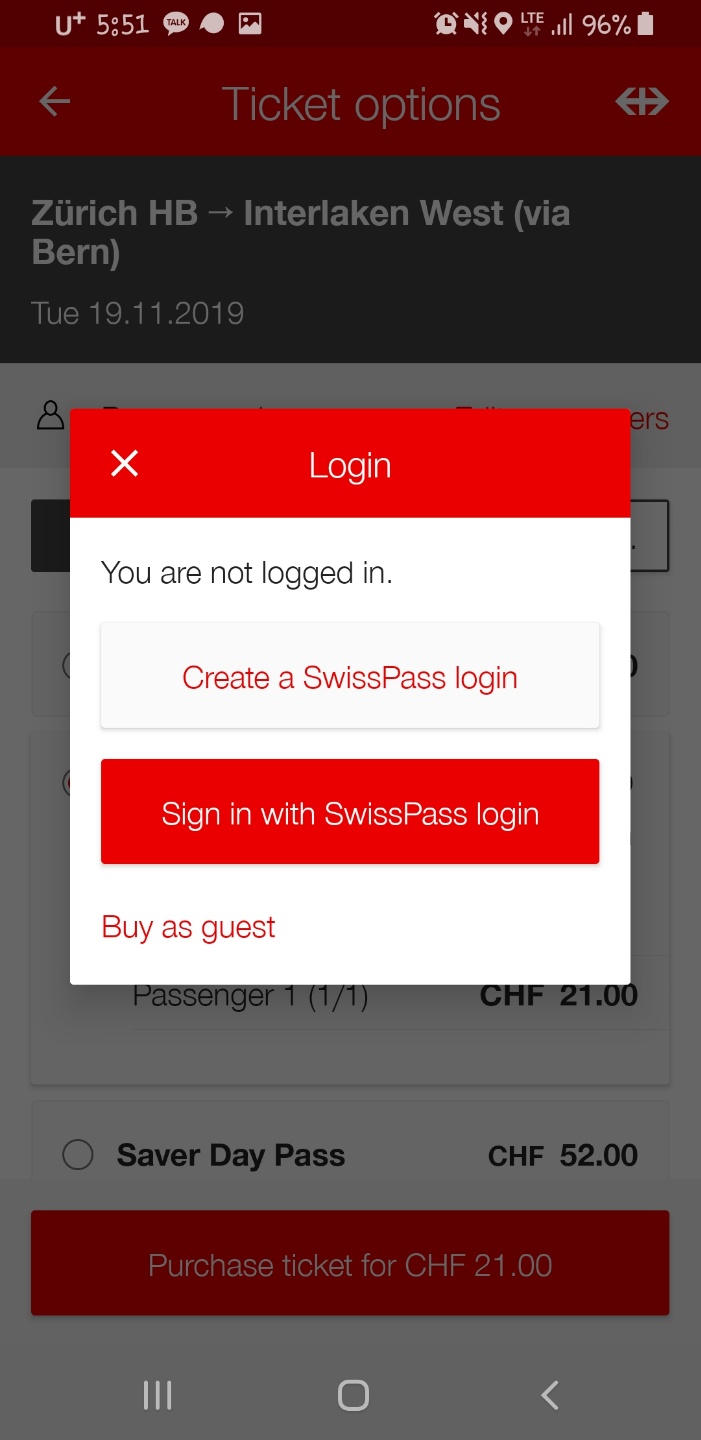 예매 후 결제를 위해서 "Tickets from CHF 10.60" 버튼을 클릭!