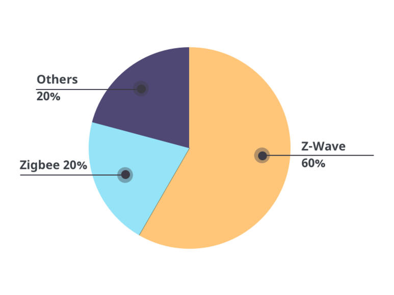 Z-Wave는 RF (Radio Frequency)를 사용한 양방향 단체 네트워크 통신 기술입니다. 900MHz 대역 주파수를 사용하기 때문에 타 무선통신 제품(2.4GHz 를 사용하는 와이파이나 블루투스)과는 전파적 충돌이나 간섭이 없습니다. 전송속도는 100Kbps 이며, 타 무선제품과는 달리 Z-Wave 는 물체 투과율이 높습니다. 저도 블루투스가 조금만 장애물이 있어도 잘 연결이 끊어지는 것을 경험했는데, Z-Wave 는 장애물이 많이 있어서 다 뚫고 지나가며 심지어 통신거리도 굉장히 긴편입니다. 또한, 232개의 노드를 소화할 수 있습니다. 이는, 가정 등에서 사용되는 메시 네트워크가 가능한 모든 디바이스와 연결이 가능하게 만들어줍니다.