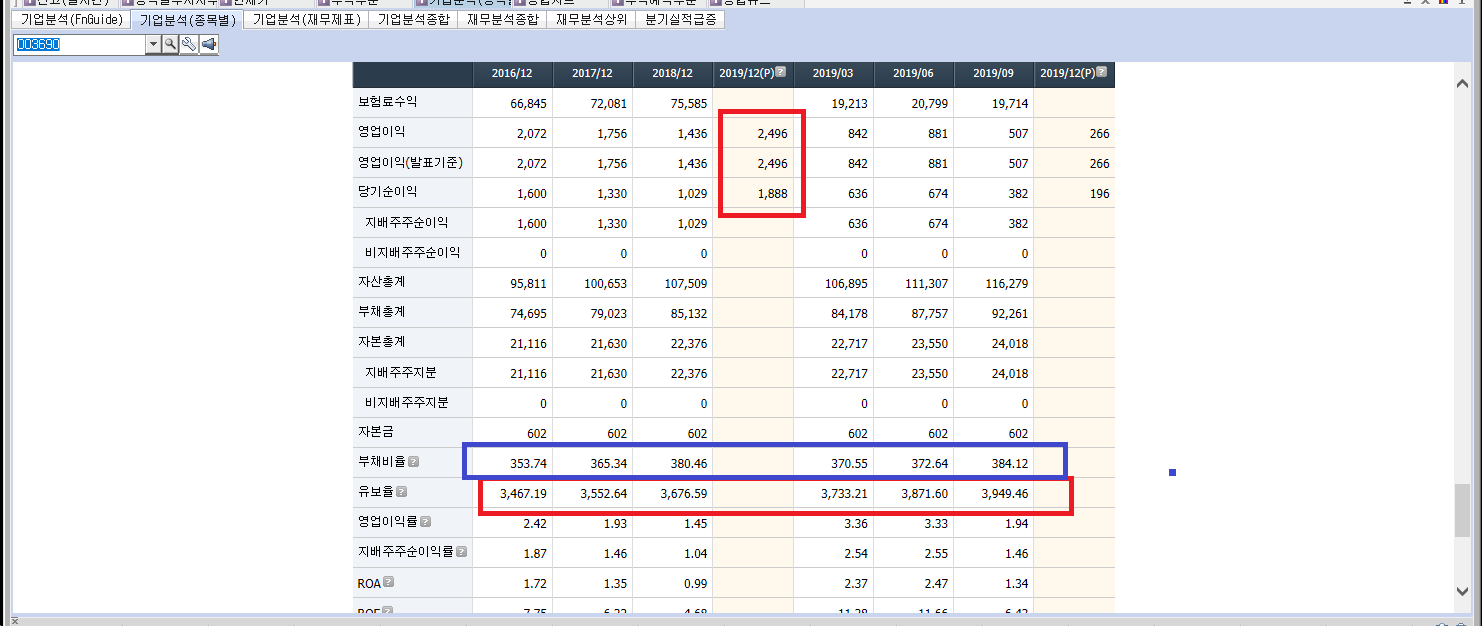 2019년 9월 전년동기 대비 연결기준 매출액은 7.6% 증가, 영업이익은 71.2% 증가, 당기순이익은 71.6% 증가. 재보험을 전업으로 하며, 3분기 영업은 원자력 원수보험을 포함하는 특종 손해보험, 외국수재보험, 장기손해보험 등의 수입보험료 증가로 전년대비 매출 증가. 장기적인 관점에서 다변화된 해외 성장 기반을 마련하는데 주력하는 등 특정 시장의 의존도를 줄여나갈 예정.