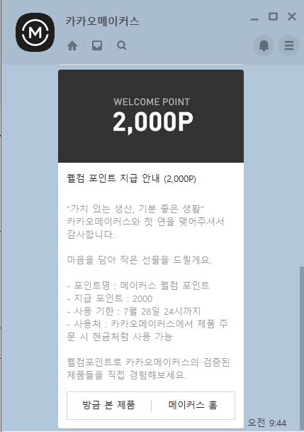 카카오톡 메이커스라는 채널을 구독하면 처음구매 시 포인트를 지급해주는데, 지급 받을 포인트를 카카오톡 선물하기에서 사용이 가능합니다!!