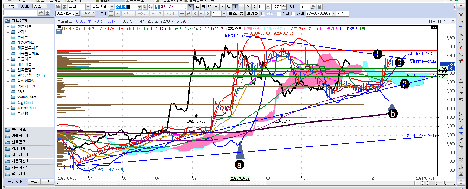 a라고 표시된 부분은 견우 직녀가 너무 떨어져 있는 구간으로 이후 주가는 흘러 내렸는데...