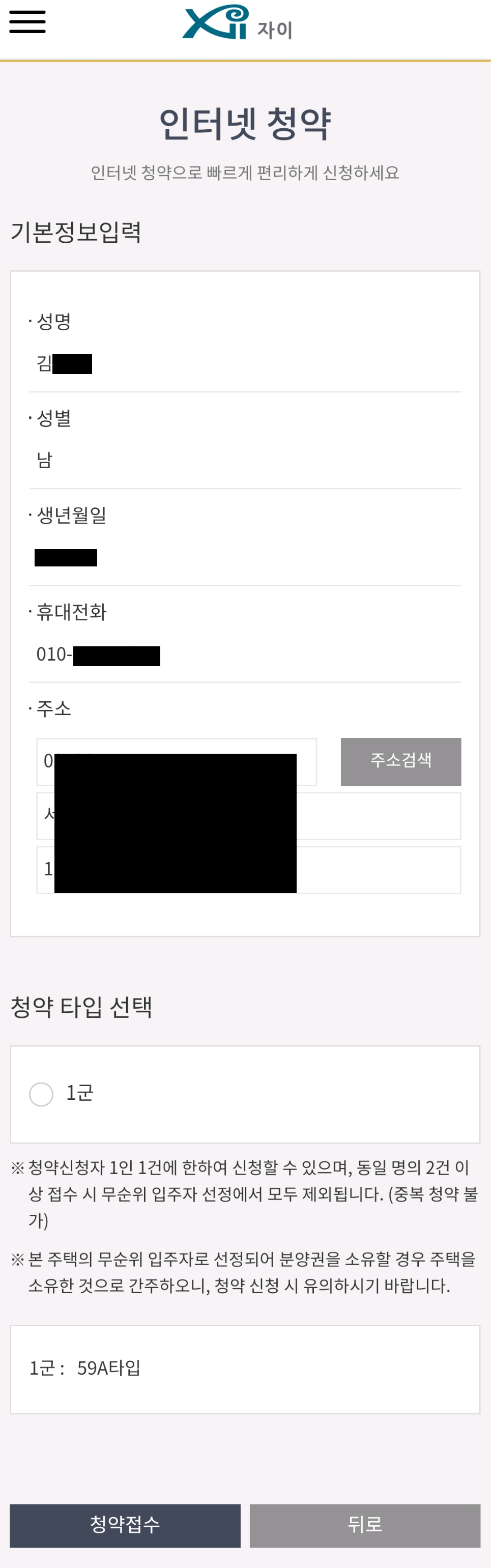진행 후 본인인증 후 청약신청을 진행하면 되는데..