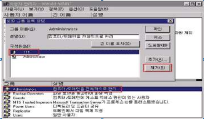 Administrator 그룹에서 불필요한 계정 제거 후 그룹 변경 ![]() |