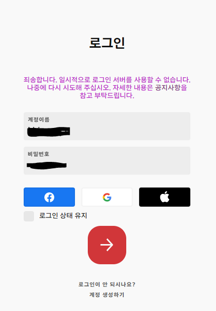 '휴면계정'이 되거나 영구/일시정지를 당했을 때 접속 오류가 발생한다는 글을 읽고
