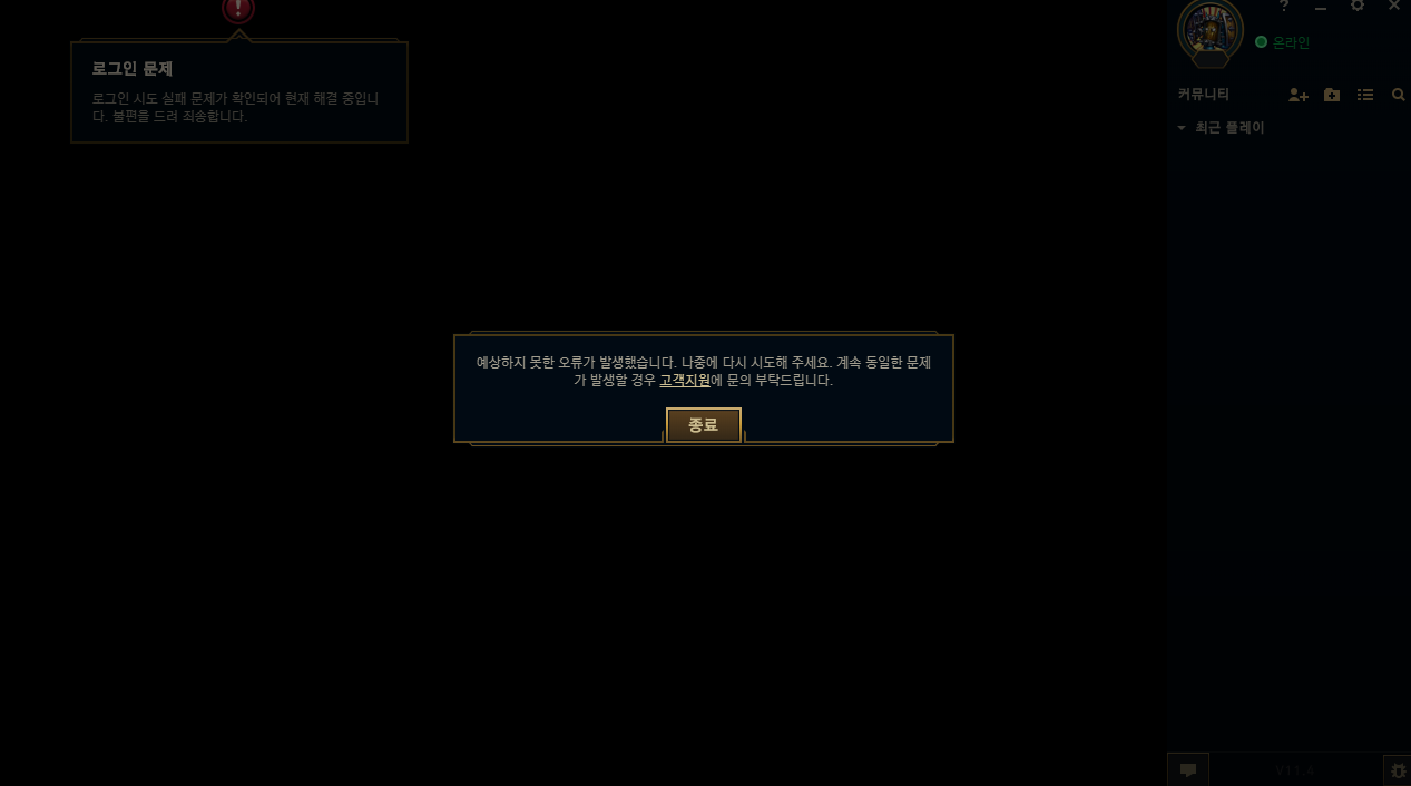 롤 예상하지 못한 오류로 인해 롤 로그인 오류가 발생한다면