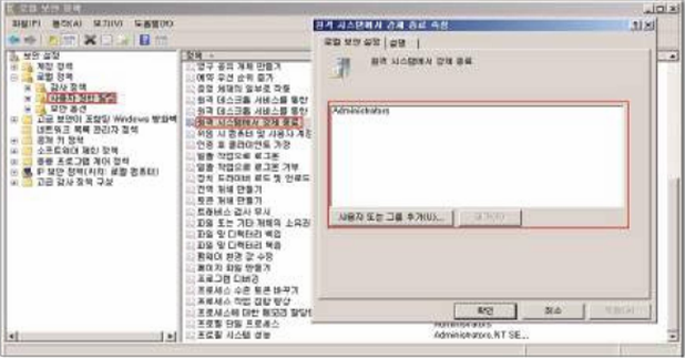 “원격 시스템에서 강제로 시스템 종료”정책에 Administrators 외 다른 계정 및 그룹 제거 ![]() |