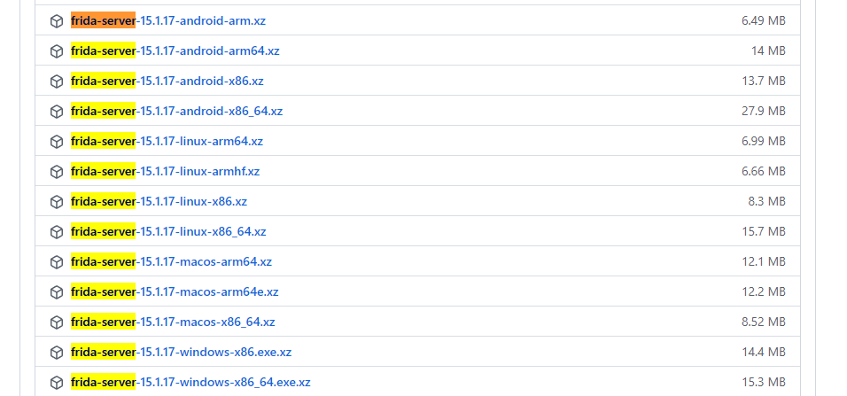 - 설치 시 확인 항목 : Frida version 확인 (15.1.17)
