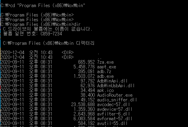 3. Nox 연결을 위해 nox 폴더 내에 있는 adb 사용해 접근 시도 Root 권한은 확인하고 시도