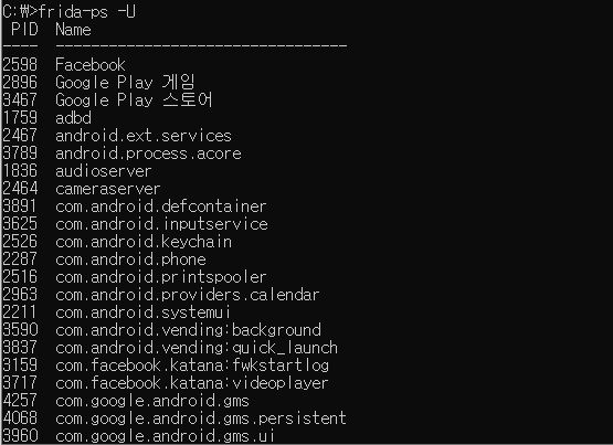 - "frida-ps -U"
