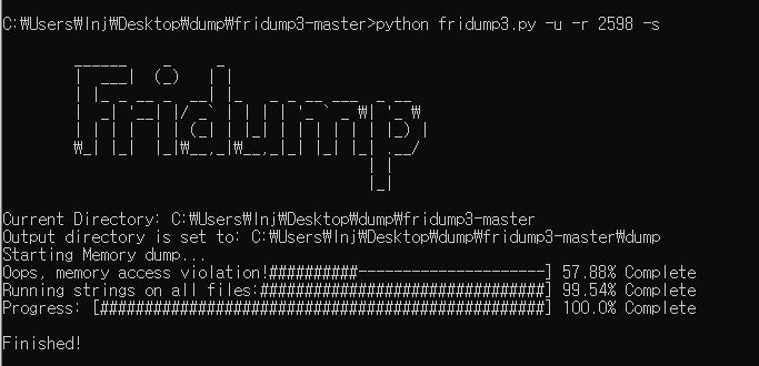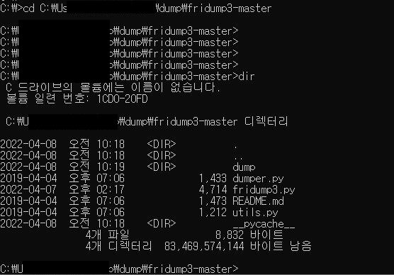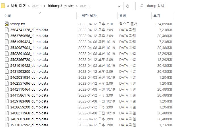 3. fridump 폴더 내 dump 폴더 생성된 것을 확인