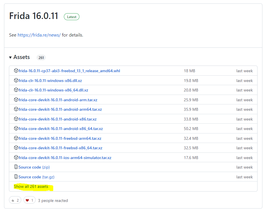 - PC에 설치된 frida 버전과 동일한 frida-server 버전 다운로드 수행