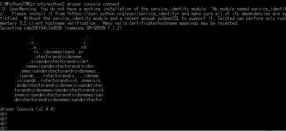4. 오류 메시지가 사라지긴했는데, drozer 설치 파일 위치가 python2 위치가 아닐 시 오류가 발생함