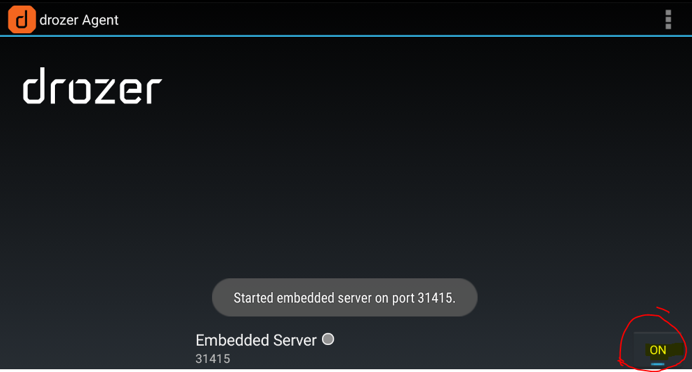 3. 단말기에서 드로저 에이전트를 실행시켜 포트를 오픈시킴