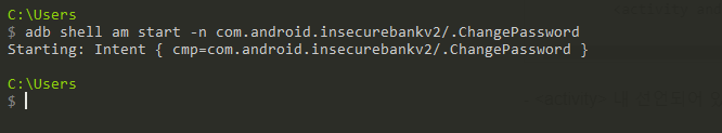 명령어 : adb shell am start -n com.android.insecurebankv2/.ChangePassword