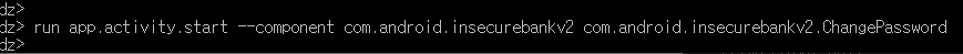 명령어 : run app.activity.start --component com.android.insecurebankv2 com.android.insecurebankv2.ChangePassword