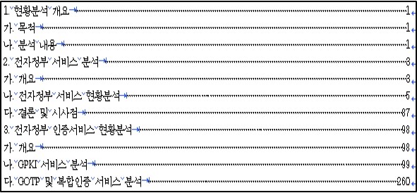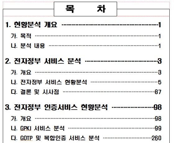 - 목차는 일반적으로 전체 페이지에 대한 목차, 표에 대한 목차, 그림에 대한 목차로 분류된다.