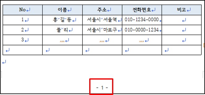 ※ 새 쪽번호를 제거하기 위해서는 [3. 감추기]에서의 동일한 방법으로 삭제가 가능함