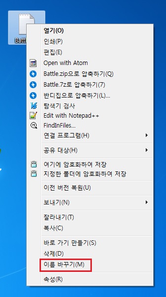 확장자 변경은 아래와 같이 변경해주세요! (bat->txt 후 다시 txt->bat으로 변경)